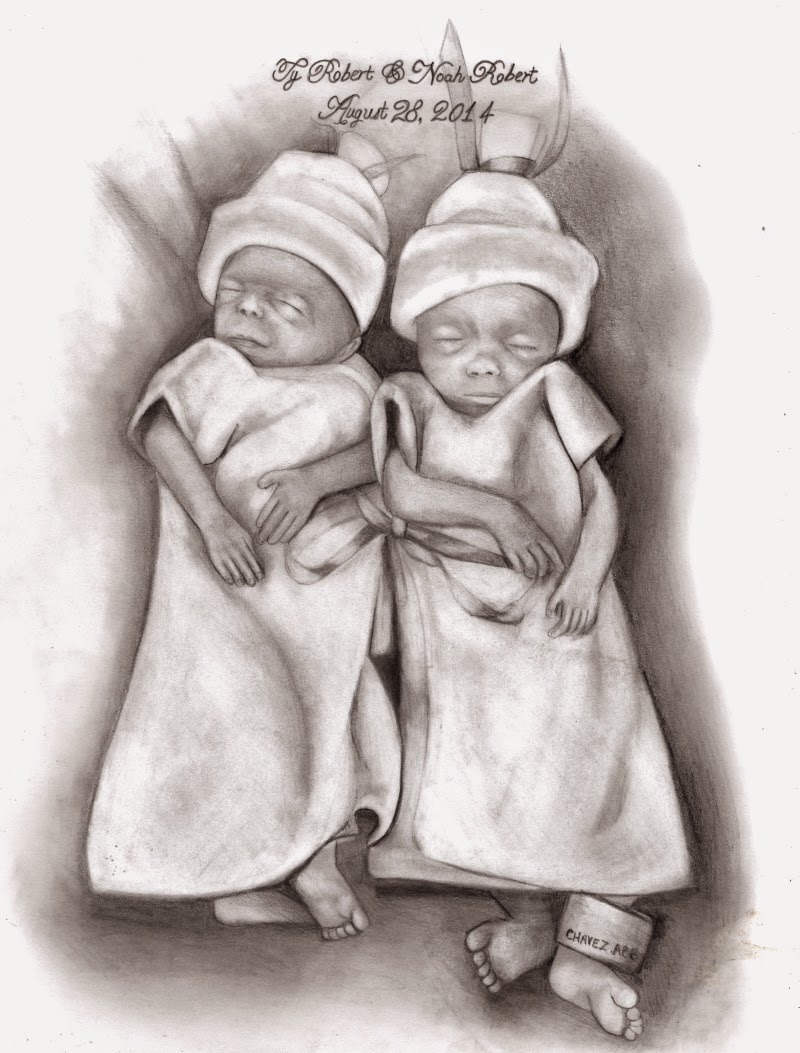 After hours of laying there waiting for the whole story to find out what was happening to me we were finally told that Baby A's (Ty) water broke and Baby B (Noah) couldn't be saved. We waited for our doctor to arrive before delivering. Ty was already dead. He died in my body waiting to be delivered. Noah was born alive and lived 2 1/2 hours. I heard his little voice when he was born. He cried a little. It was a beautiful sound.